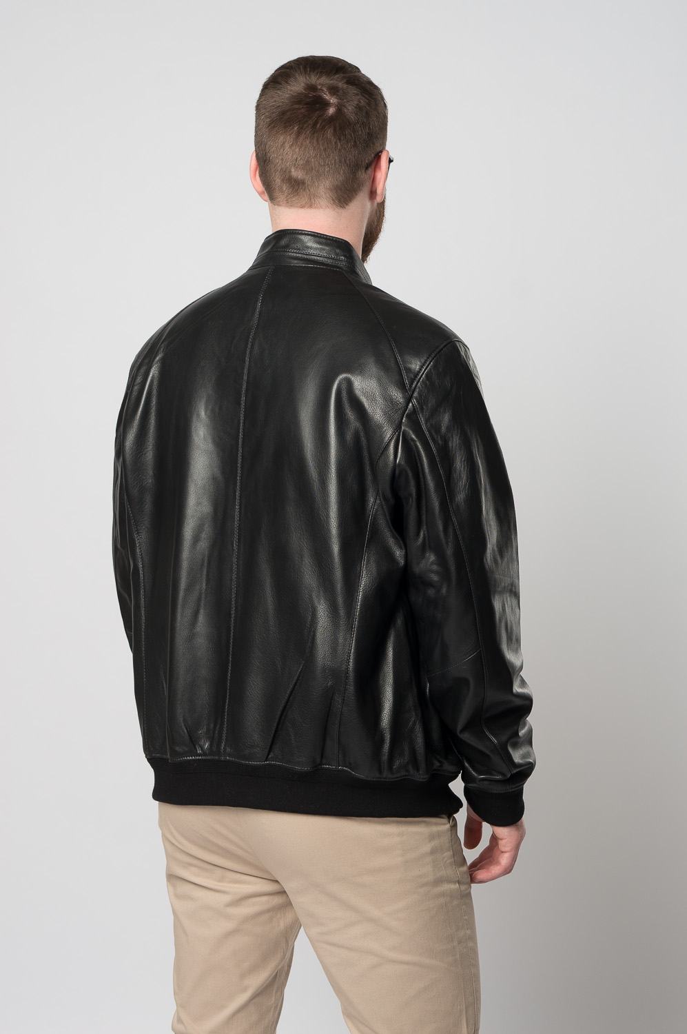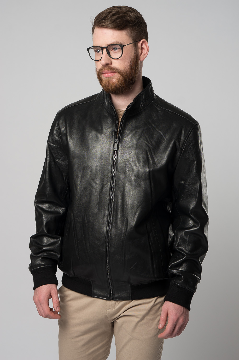 Классическая мужская куртка-бомбер на молнии в черном цвете. Это изделие выполнено из приятной на ощупь, прочной и износостойкой натуральной кожи. Фасон бомбер позволяет куртке надежно фиксироваться на теле за счет резинок по низу изделия и на рукавах. Модель дополнена невысоким воротником-стойкой и кнопками. Отлично сочетается с брюками, джинсами, ботинками и кроссовками. Подходит для городской жизни.