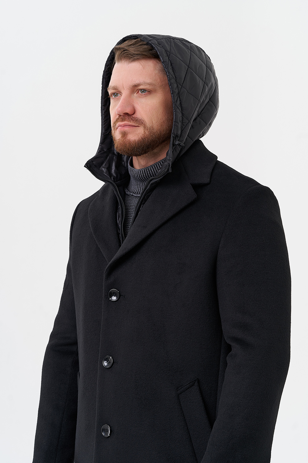 Вид ворота - английский воротник, съемный капюшон текстиль