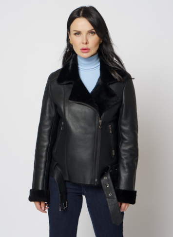 Женская дубленка косуха из овчины в классическом черном цвете - одна из самых популярных моделей за последние года. Стильный фасон, сохранение тепла и качественные долговечные материалы - основные причины ее популярности. Подойдет для молодой и активной девушки, которая следит за модой и любит комфорт. Модель дополняют ремень и молния.