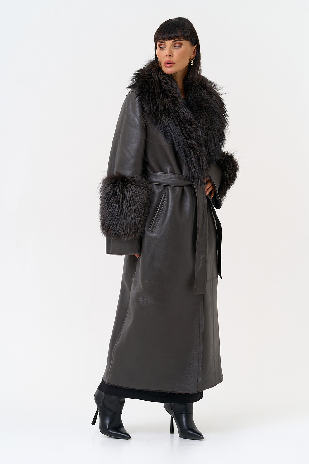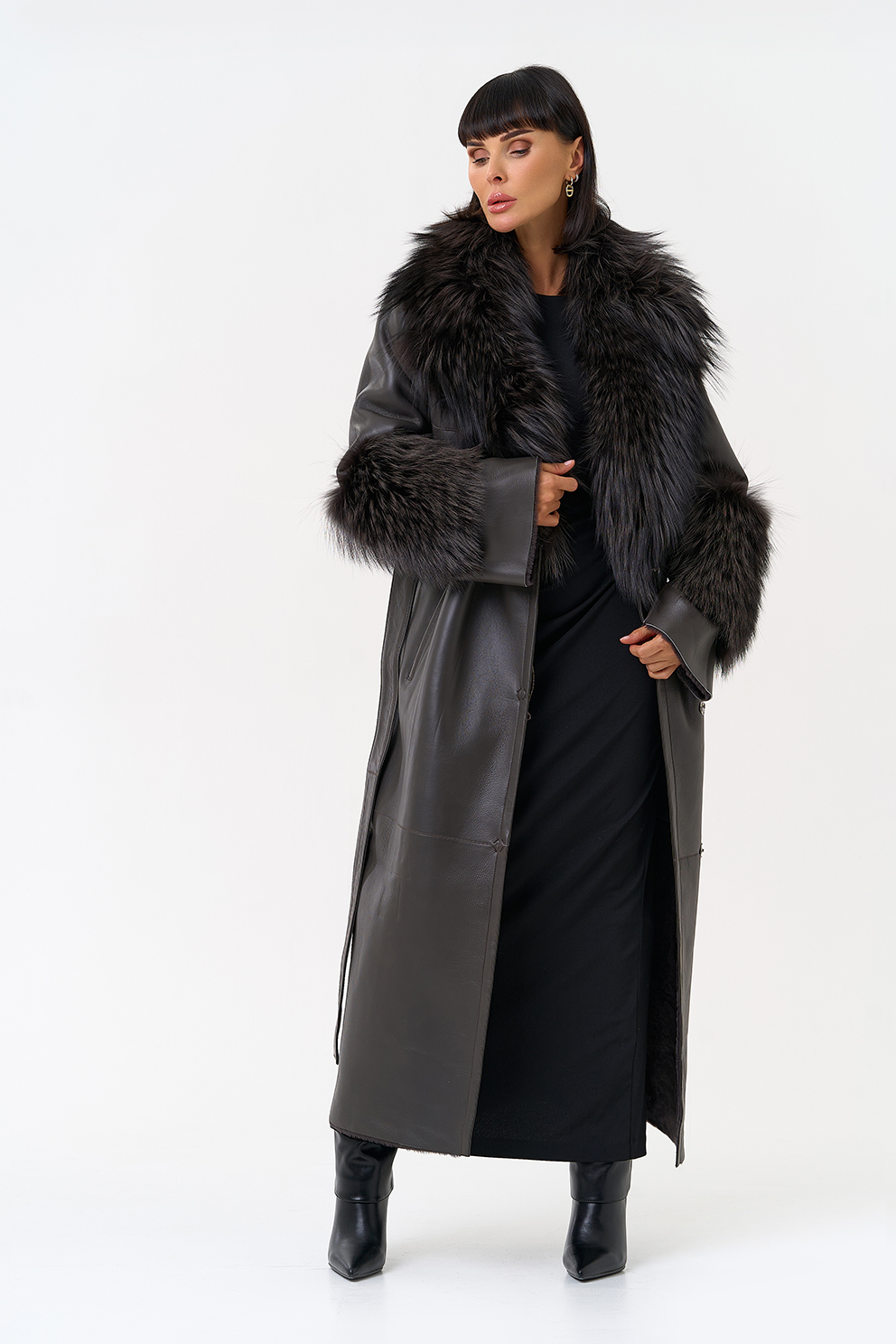 Отделка рукава - мех лисы, цвет серый
